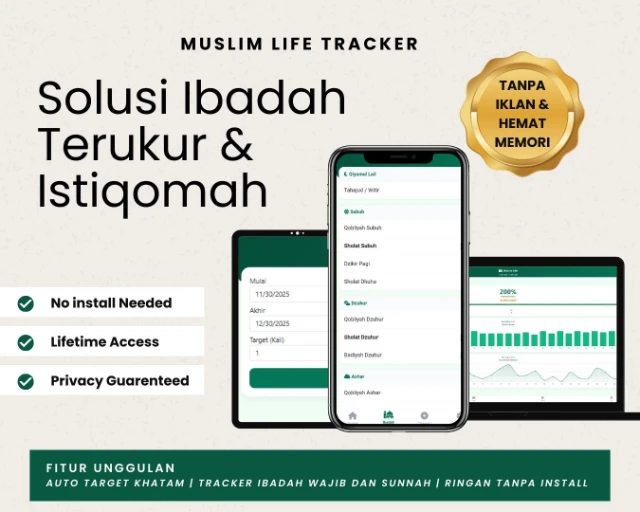 Hidup terasa hancur, ibadah berantakan, dan Al-Quran berdebu? Saatnya bangkit dari titik terendah. Mulai perbaiki hubunganmu dengan Allah secara perlahan, terukur, dan Istiqomah menggunakan alat bantu ini.